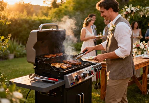 Food is the key to any wedding, and for many couples, a backyard barbecue is the ideal way to serve guests. Grilling outdoors, whether with steaks, burgers, skewers or plant-based food, creates a celebratory atmosphere.